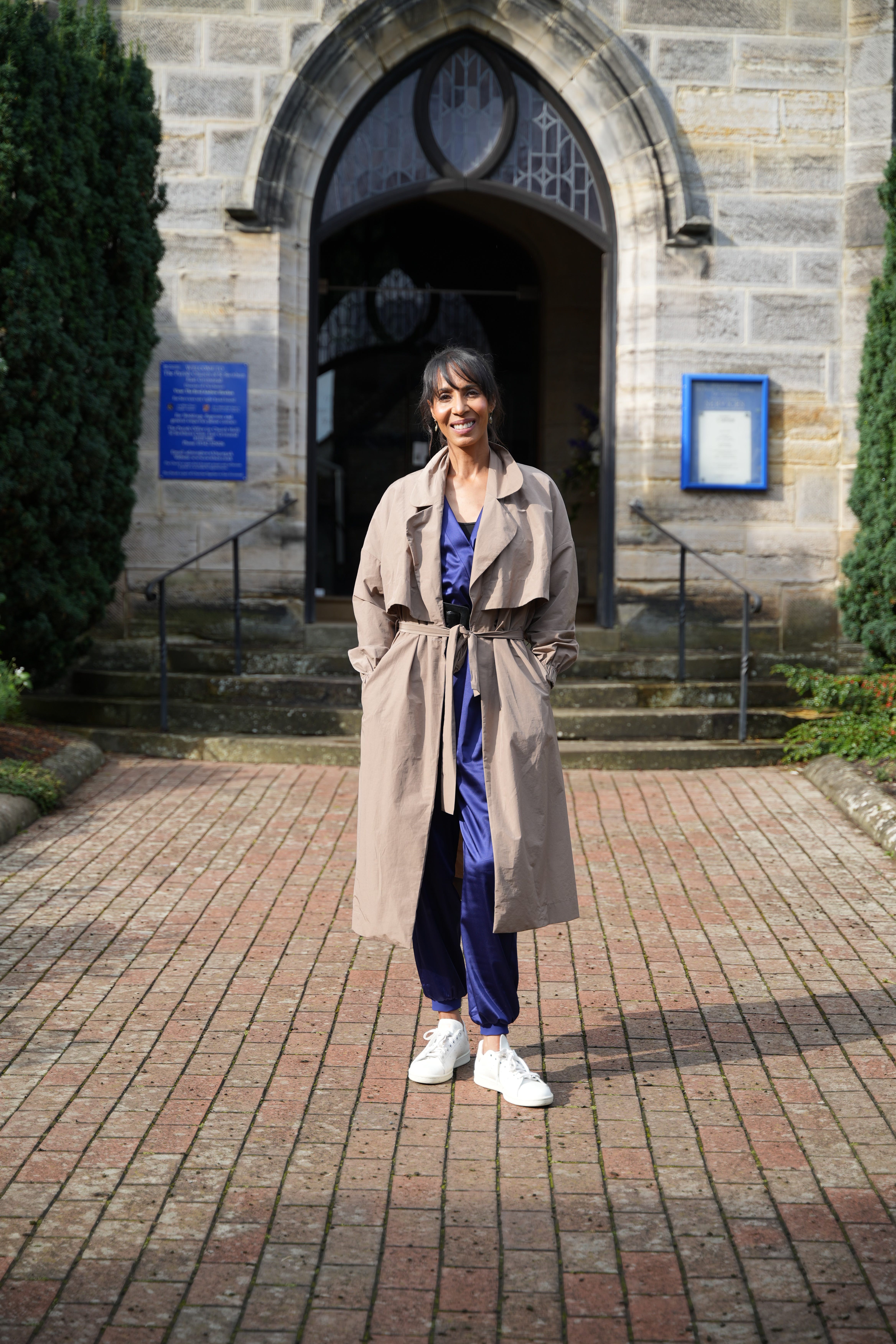On location: Blue jumpsuit by Chiara Boni La Petite Robe, from Yoox. The rather dapper camel trench is from The Fold London. Trainers, same as ever.